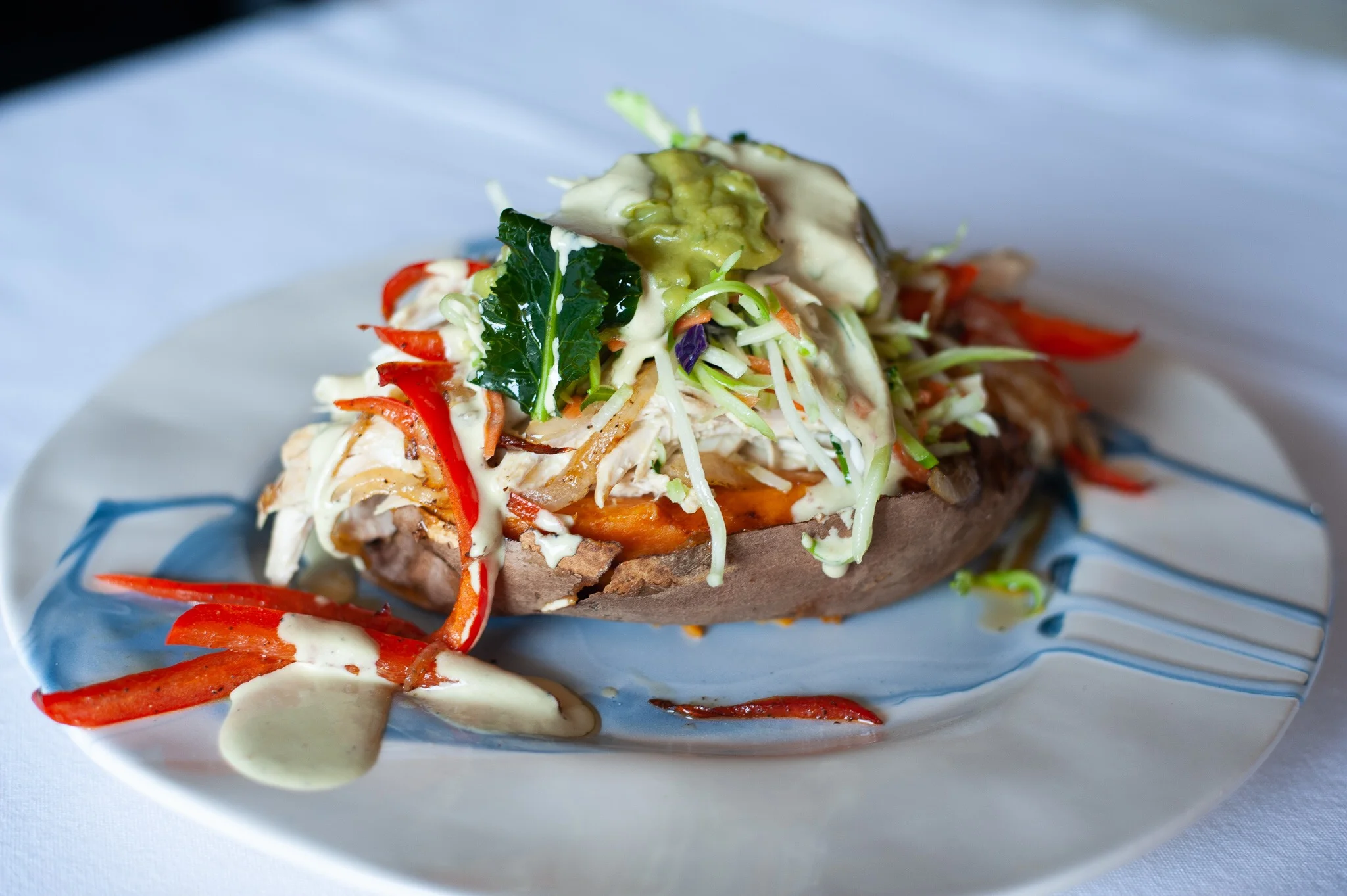 Dave's Hot Sauce Shredded Chicken Stuffed Sweet Potato